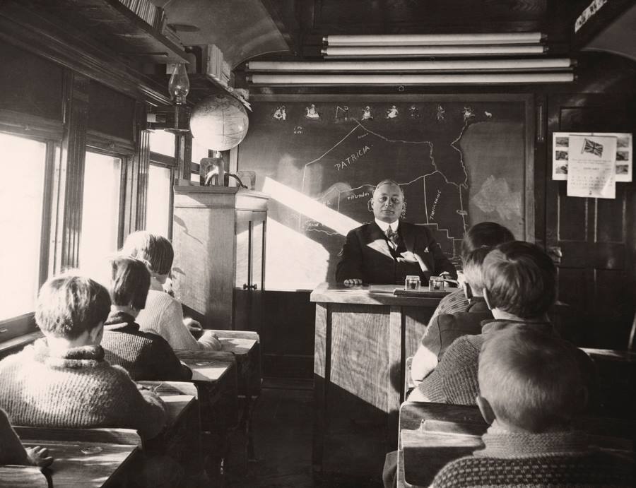 If you follow me elsewhere on social media, you already know I’m obsessed with the National Geographic photo of a classroom inside a railway car in Ontario, dated August 1932 (above). I knew nothing about this photo nor did the source (National Geographic Photo Archives) provide any context for the photo.